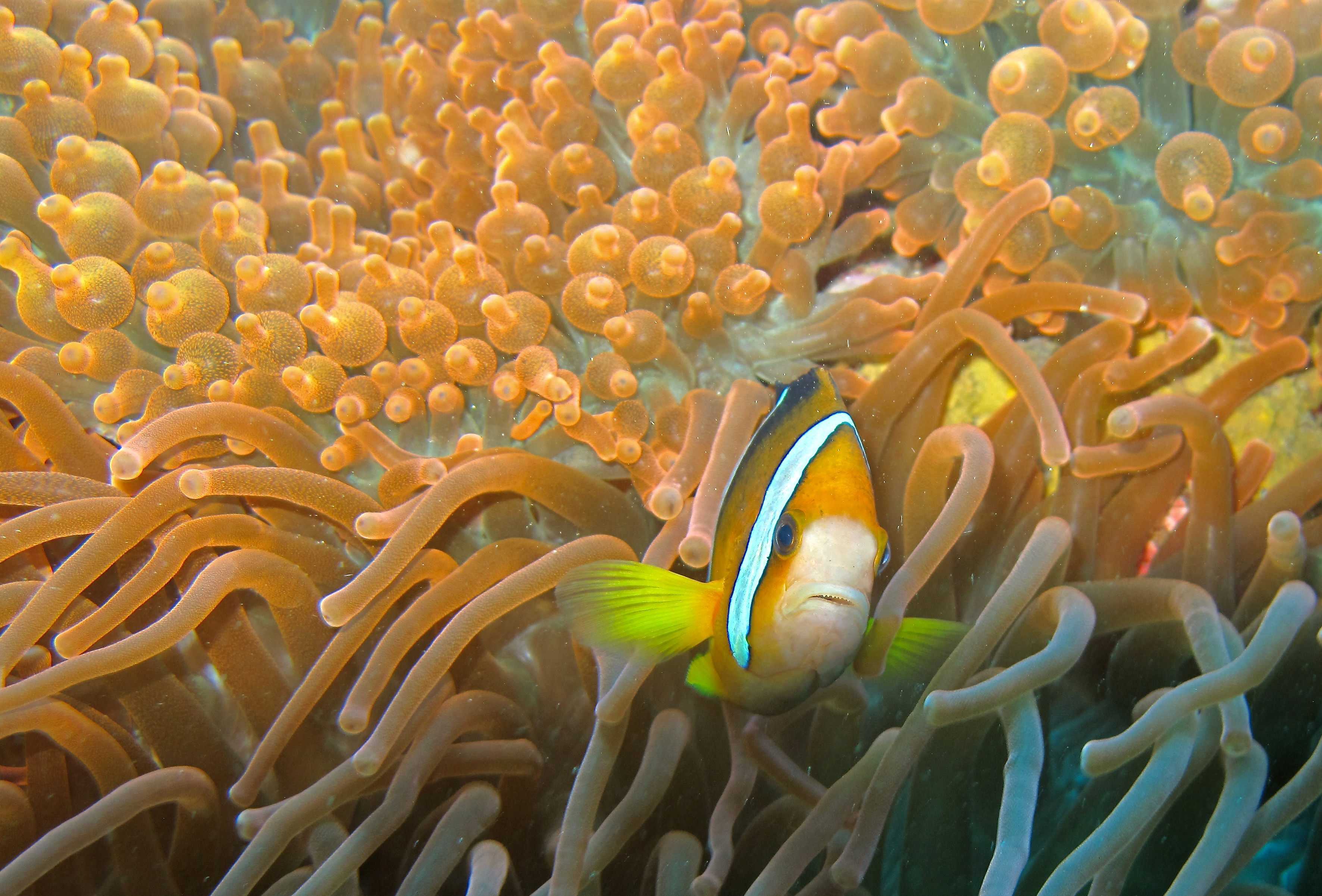 Рыбы-клоуны живут в симбиозе с актиниями: у актиний есть жгучие щупальца, среди которых всегда может спрятаться от хищника (саму рыбу щупальца не беспокоят), в ответ же рыба-клоун вентилирует воду вокруг актинии и помогает избавиться ей от пищевых отходов.