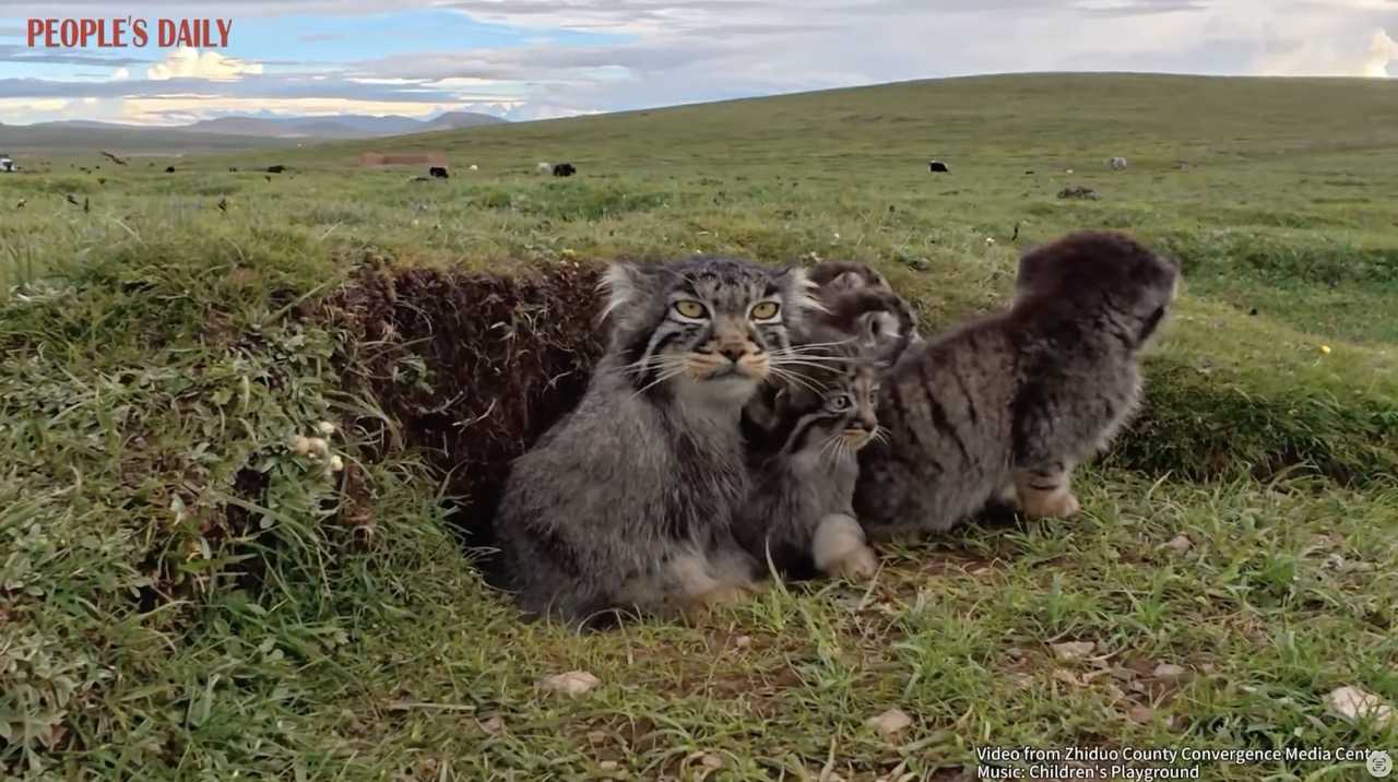 В Китае рядом с входом в нору семьи манулов установили фотоловушку — и она запечатлела по-настоящему трогательные кадры.