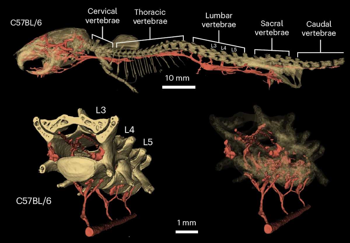 Для поиска анатомической связи между телом и головой исследователи заполнили кровеносную систему мышей рентгеноконтрастным веществом и просканировали позвоночник с помощью микрокомпьютерной томографии. В качестве финальной проверки для спящих мышей сшили крошечный пневматический пояс. Манжету надевали на живот и на две секунды надували, искусственно имитируя напряжение пресса и исключая реальную мышечную работу.