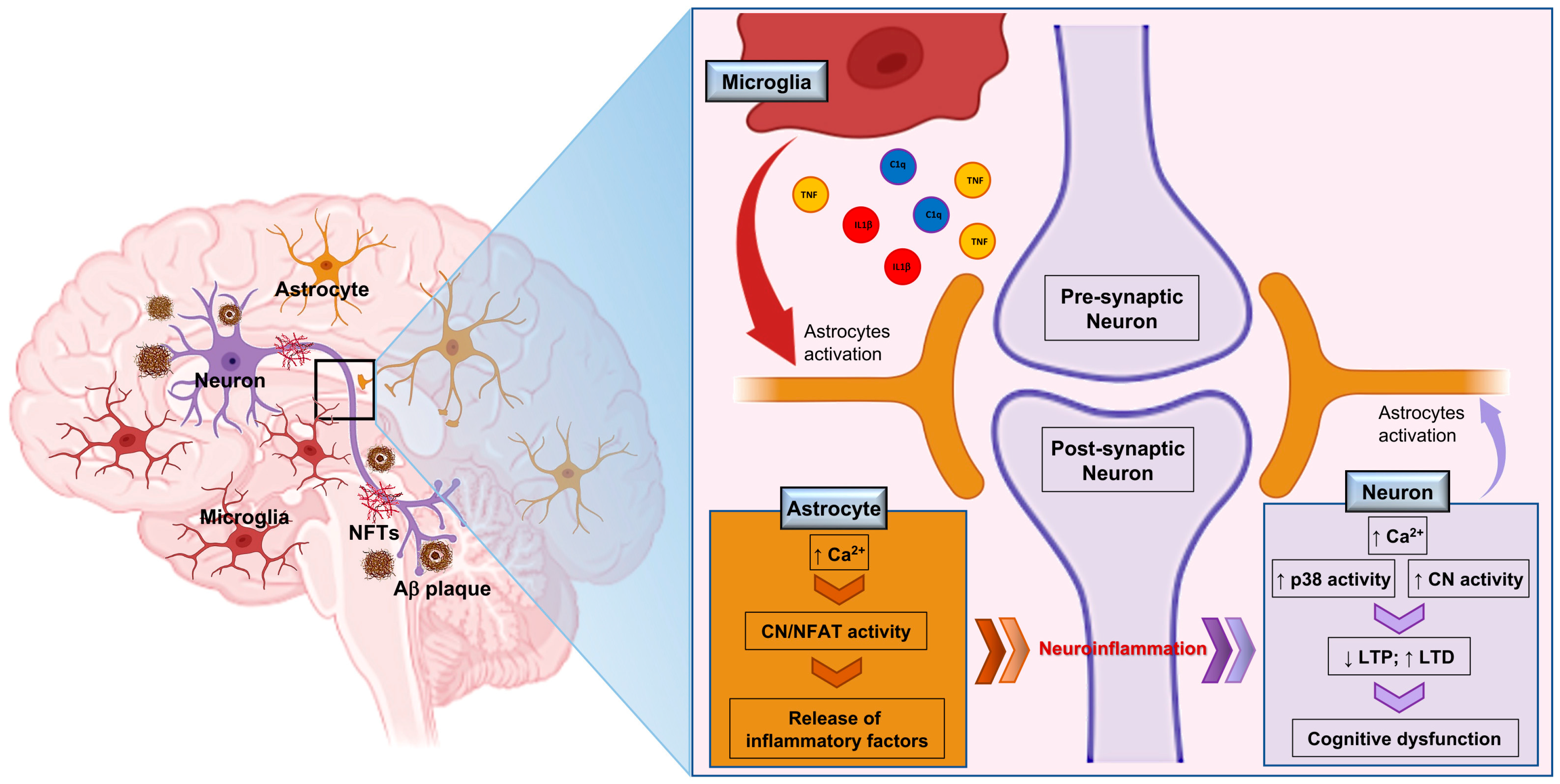 Именно через это звено вредоносное влияние амилоида и воспалительной реакции глиальных клеток приводит к гибели нейронов и клиническим симптомам – потере памяти и когнитивному спаду.