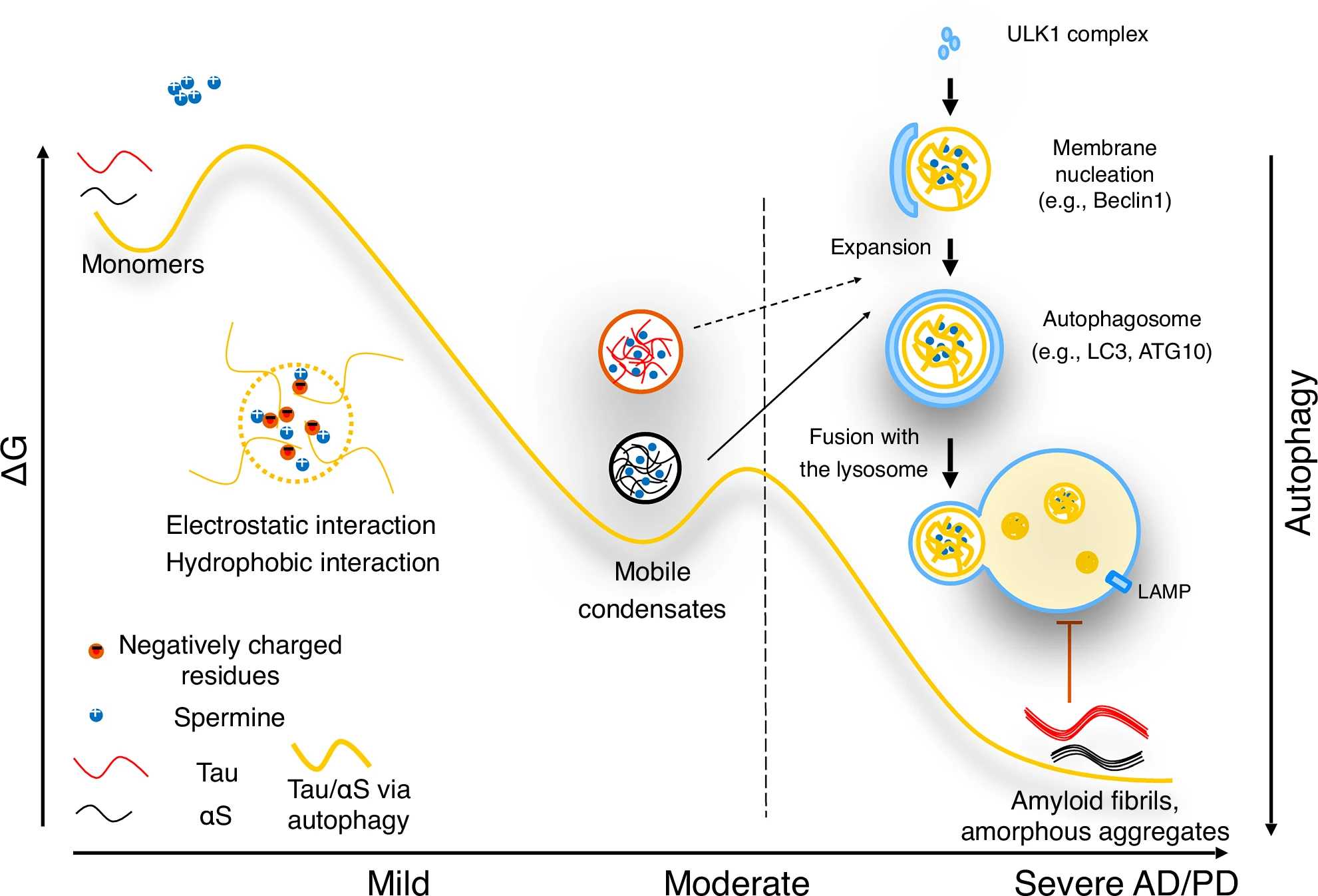 В предложенной модели работы спермина предполагается динамическое взаимодействие с процессами клеточной аутофагии, где жидкообразные конденсаты распознаются и выводятся аутофагосомами. Однако, как только эти конденсаты созревают в твердообразные фибриллы, они становятся устойчивыми к аутофагическому выведению, способствуя патологии, наблюдаемой при нейродегенеративных заболеваниях.