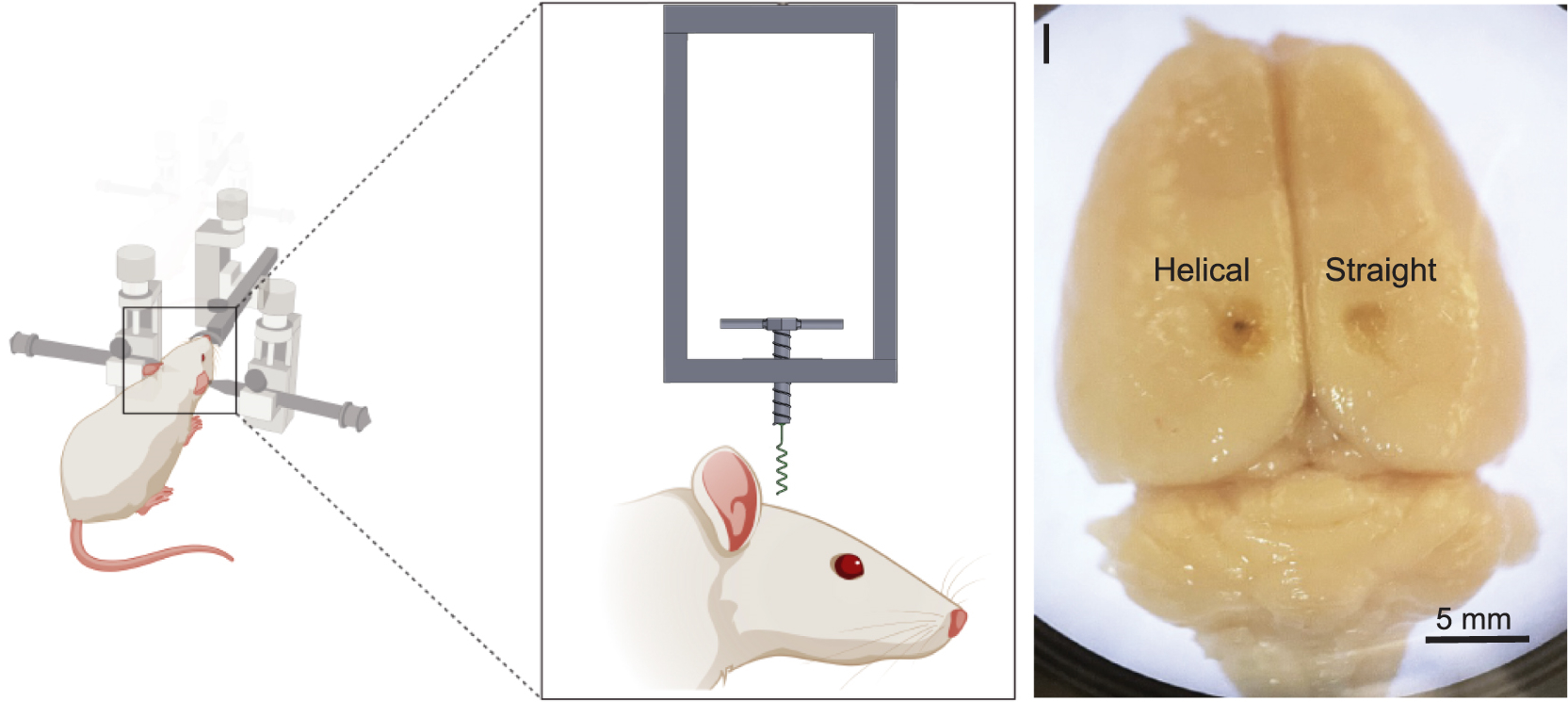В новом исследовании сначала с помощью моделирования, а затем и в лабораторных испытаниях на крысах ученые показали, что катетер в виде вертикальной спирали имеет намного больше преимуществ. Такой катетер одновременно прочный и гибкий, его гораздо легче вводить в мозг, и при этом лекарство будет распределяться более равномерно и на большом участке, исключая повторное травмирование тканей мозга. Управлять распределением лекарства можно посредством расположения отверстий на катетере, изменяя его толщину и длину.