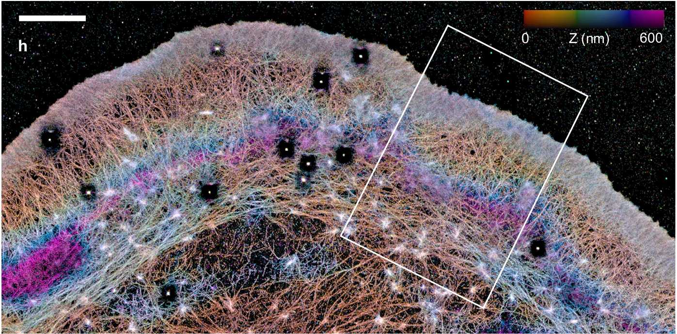 Трехмерная визуализация выявила причину этих течений. Передняя часть ползущей клетки (ламелла) отделена от остального клеточного тела плотной дугообразной стеной из молекул актина и миозина. Эта структура функционирует как безмембранный барьер — белковый конденсат. Молекулы миозина непрерывно сокращают эту сеть, физически выдавливая внутриклеточную жидкость строго вперед. Барьер действует как полупроницаемая плотина: пропускает жидкость к краю клетки, но сильно затрудняет отток белков обратно.