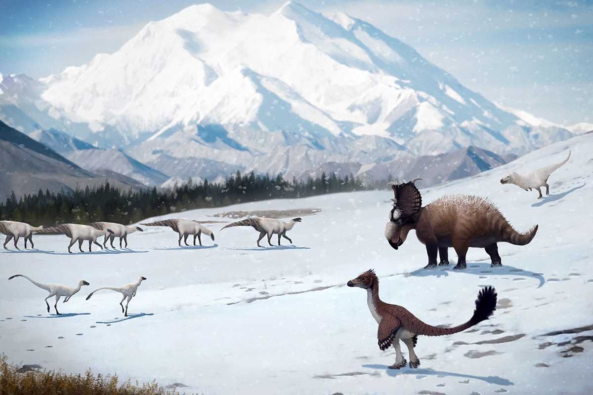Особенно в выгодном положении оказались динозавры, которые обитали в приполярных областях на территории современной Сибири и Китая. Они сталкивались с сезонными морозами и, вероятно, круглый год жили в условиях контрастного климата, то есть уже были адаптированы к суровым зимам.