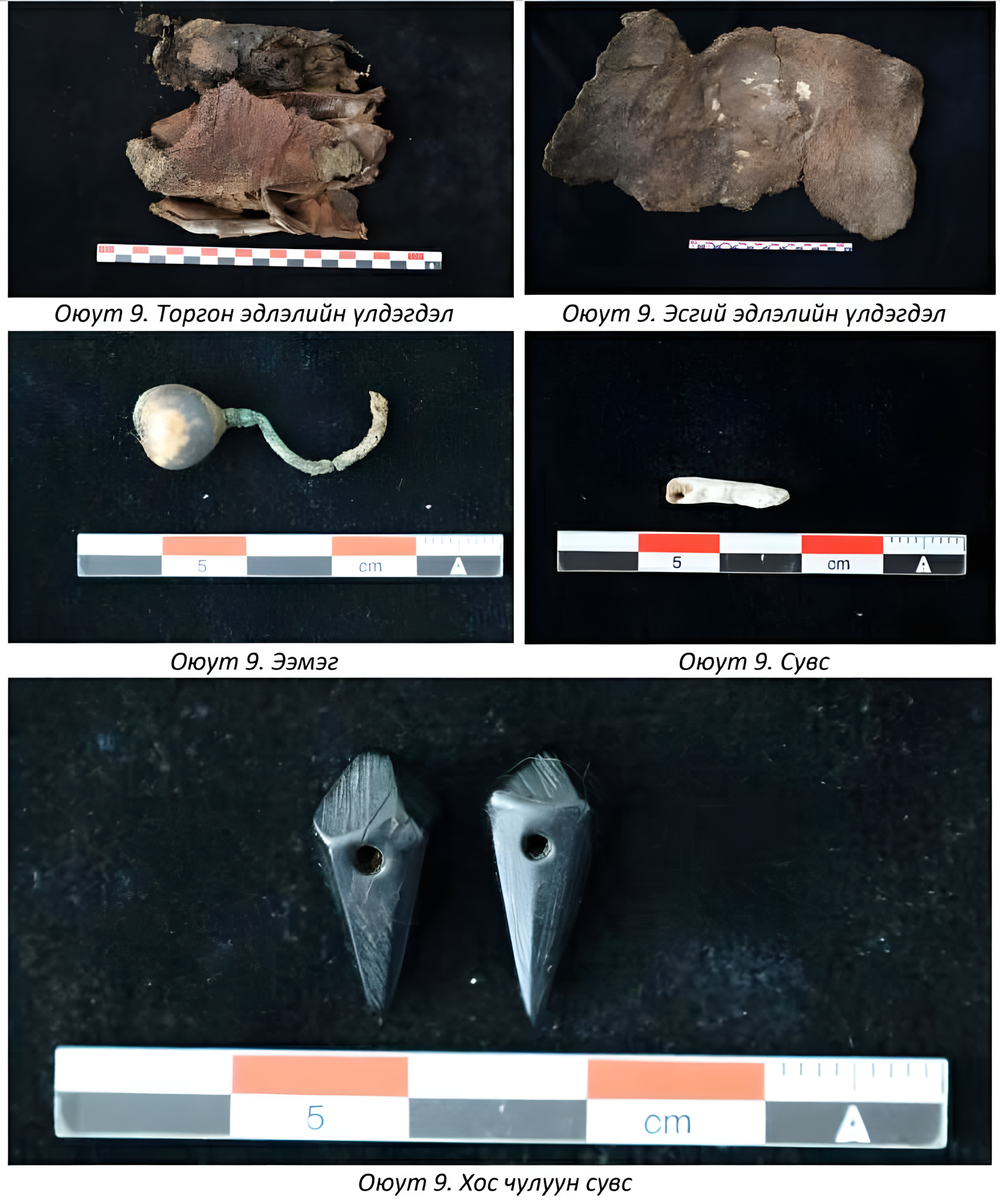 По словам археологов, артефакты сохранились в хорошем состоянии, особенно, если учитывать суровые климатические условия региона. Из могил извлекли бронзовые толи (зеркала), фрагменты войлока, кости животных и погребальные подношения.