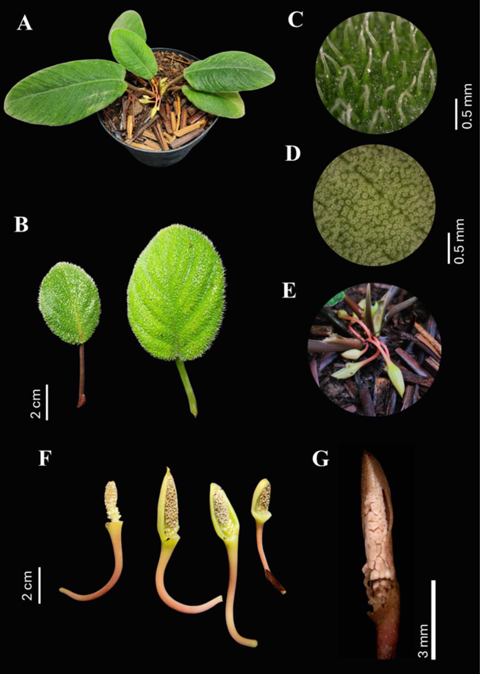 Как отмечается в журнале PhytoKeys, одной из характерных особенностей этого растения являются листья, покрытые густыми ворсинками. По текстуре они напоминают шершавый кошачий язык — поэтому вид получил название Homalomena lingua-felis.