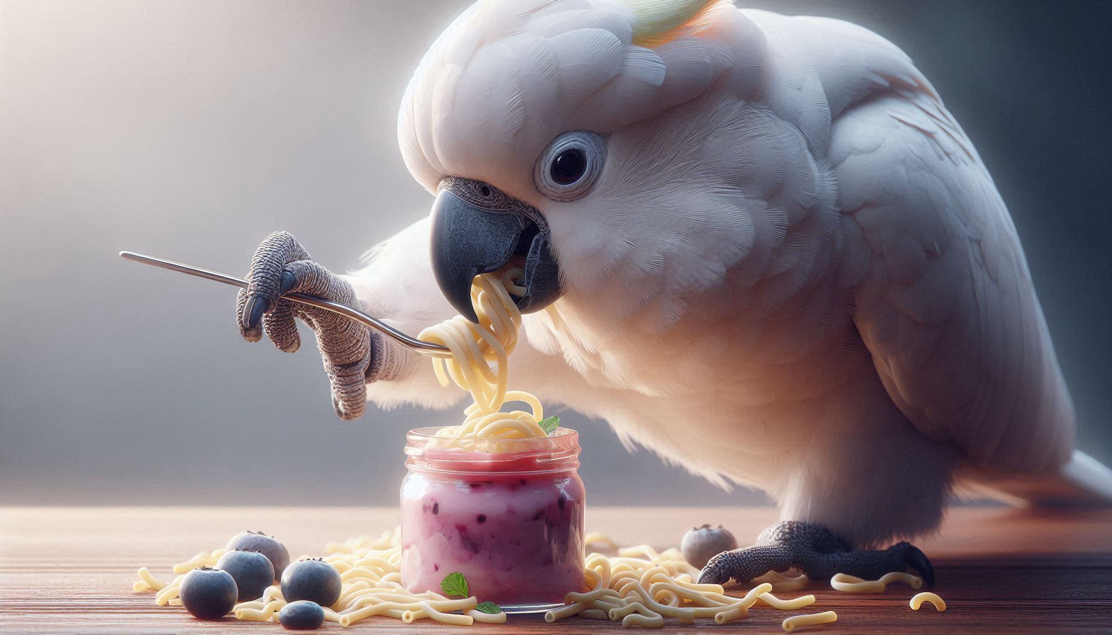 Вся еда была приготовленной, то есть достаточно мягкой, и макать её в воду, чтобы размягчить, смысла не было. Собственно, какаду этого и не делали. По всей видимости, их манипуляции с макаронами имели целью сделать еду более вкусной. Есть сведения, что нечто подобное проделывают японские макаки, но достаточно убедительных экспериментов с ними на этот предмет не ставили. Никакие другие животные за комбинированием вкусов замечены не были. Какаду Гоффина считаются одними из самых умных птиц, и эти кулинарные упражнения – ещё одна демонстрация их ума и сообразительности.