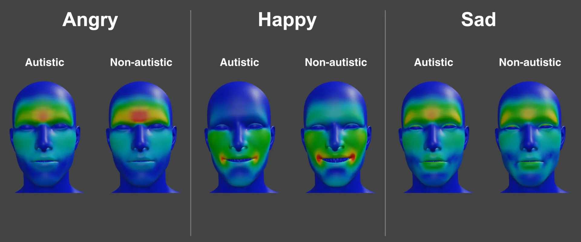 Авторы статьи заметили различия в том, как злость, радость и грусть проявляются в мимике аутичных и неаутичных людей. При этом у участников с РАС было больше уникальных выражений лица: они более активно использовали рот и менее активно — брови, менее широко улыбались при демонстрации радости и сильнее поднимали верхнюю губу, когда изображали грусть.